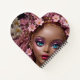 A pretty doll with glitter makeup and pink flowers. Personalize with an initial.
