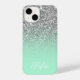 Create your own personalized faux silver bokeh sparkles glitter and mint green ombre case.