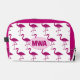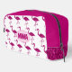 Sparkly flamingo Pink faux sparkles custom white Monogram Toiletry Bag. Monogram Personalize with your custom initial and name. Fun faux sparkly fashionable summer Accessories for her. Beautiful girly glamorous pink shiny glitters sparkles summer exotic flamingo bird. Photo of pink sparkles, not actual glitter! No messy glitter to the touch!