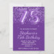 Sparkly Glittery Royal Purple Number 75 Birthday Invitation