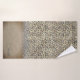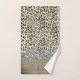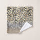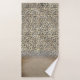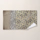 On this stylish towel set is a gold metallic sheen on the bottom of the large towel where you can personalize it then a glittery silver pattern that blends into a glittery silver leopard print with a gold backdrop for extra pop. Can be personalized on the bottom. Glam chic vibes.