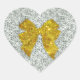 Sparkly Gold Bow on Silver Sequins Heart Sticker