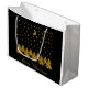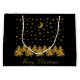 Sparkly gold Christmas tree, moon, stars on black Large Gift Bag