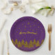 Sparkly Gold Christmas tree, stars, snow on purple Paper Plates