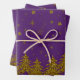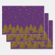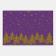 Sparkly Gold Christmas tree, stars, snow on purple Wrapping Paper Sheets