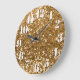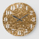 Gold chunky, sequin or confetti glitter with bokeh blur and faux sparkle white white fat face numbers with a dark blue drop shadow on a custom wall clock for her.