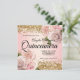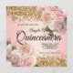 Sparkly Gold Glitter Blush Pink Floral Quinceañera Invitation