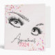 This appointment binder book features a sophisticated blend of glam and minimalist design elements, set against a blush pink gradient background that exudes a sense of luxury. Embellished with confetti-like, multicolor sparkly stars, it brings a festive and girly charm. At the heart of the design are elegant black illustrations of lash extensions, emphasizing a theme of beauty and elegance. The book allows for customization with your name and profession in burgundy purple, making it ideal for makeup artists, brow bar professionals, beauty salon owners, lash extension specialists, and estheticians. It also includes space for personalized social media icons combining functionality with style.