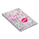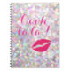 "Oooh la la!" and cute lips, on a sparkly photo illustrated background accents this notebook.