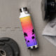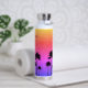 A touch of sparkly glamour on colorful, personalized water bottle decorated with palm tree silhouettes.
