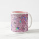 This very feminine mug is covered by a picture of pink lacy fabric, irridescent sequins, and sparkles.