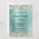 Sparkly Platinum Glitter Turquoise Foil Monogram Invitation
