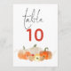 Sparkly Autumn Pumpkins Florals Wedding Table Number. Autumnal orange and cream Pumpkins and florals with a touch of faux glitter, with an elegant set script for Table. The same design is on the other side.