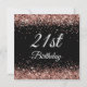 Sparkly Rose Gold Glitter 21st Birthday Black Invitation