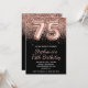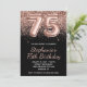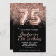 Sparkly Rose Gold Glitter Black Number 75 Birthday Invitation