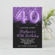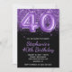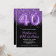 Sparkly Royal Purple Glitter Black Number 40 Invitation
