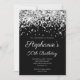 Sparkly Silver Glitter Black Elegant 50th Birthday Invitation