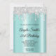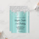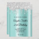 Sparkly Silver Glitter Drips Light Teal Ombre Invitation