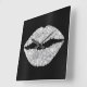Sparkly Silver Glitter Lipstick Black Foil Square Wall Clock