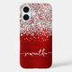 Sparkly Silver Glitter Red Glam Name Case-Mate iPhone Case