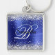 Sparkly Silver Glitter Sapphire Blue Foil Monogram Keychain