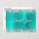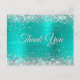 Sparkly Silver Glitter Turquoise Foil Thank You Postcard