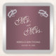Sparkly Silver Rings & Burgandy Wedding Square Paper Coaster