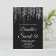 Sparkly Silver String Lights Black Sweet 16 Invitation