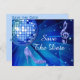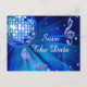 Elegant, glamorous 60th Birthday / Sixtieth Birthday save the date postcards. Trendy glitz and glamour Save the dates for your 60th / Sixty birthday party celebrations. Beautiful, dazzling blue and silver sparkles diamonds bling jewels musical note image, funky blue retro disco mirror ball and blue and silver glittery stiletto high heel fashion shoe image on a chic blue background. A cute, classy, fashionable, stylish, pretty save the date postcard for women's birthday parties. Women will love this cool, fun, funky, girly design for their glamorous music and dancing parties. If you need any assistance in customizing your product please contact me through my store and i will be very happy to help.