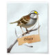 White-throated sparrow (Zonotrichia albicollis) in the snow. Small wooden board. Customize name. Ideal for gift giving.