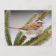 A white throated sparrow sitting on a pine tree in the winter. Taken in Pleasant Valley, NY.