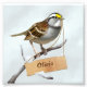 White-throated sparrow (Zonotrichia albicollis) in the snow. Small wooden board. Customize name. Ideal for gift giving.