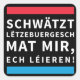 Rumour has it that Luxembourgers don't always make it easy for foreigners trying to learn the language. As soon as you gather the courage to try a newly learnt Luxembourgish sentence, they reply in English, or French, or German... anything but Luxembourgish. Why not gently remind Luxembourgers to reply in Luxembourgish? Schwätzt Lëtzebuergesch mat mir, ech léieren. Speak Luxembourgish to me, I’m learning.