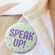 Another cute hard-of-hearing badge by JessicaAmber! This button features the slogan 'Speak Up!' on a floral background in a pastel purple and green color scheme. You can edit the text if you want. A great gift for your mother or grandmother who wears hearing aids. ⭐ For more special needs badges, visit my store zazzle.com/jessicaamberartist ⭐ For custom orders, message me on Zazzle
