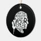 Lightweight, smooth, pure white ornament with nice sheen. Perfect size to be seen from across the room ... and to attract closer inspection! Price was great for ordering enough for the whole family! Clear, bold black design just as requested. Matches the order exactly. Just so nice!