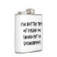 Well made flask, a little better than I had expected. Flask came in clear plastic box which gave it a nice presentation when I took it out of the zazzle packaging. Image is not printed on flask but on sticker. Don't know how this will hold up I haven't used it yet. This would make a Great gift! I plan to purchase more for friends! Cheers. I thought a little brighter than computer. Very crisp, writing wasn't
