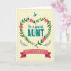 This greeting card features a soft, creamy background that lets the central artwork feel gentle and affectionate ❤️. In the middle, a heart-shaped wreath of green leaves is dotted with bright fuchsia flowers, each with a sunny yellow center, creating a cozy frame like a hug. Inside the wreath, teal lettering places “to a special” above a larger, uppercase “AUNT,” making the dedication easy to spot. Above the top of the wreath, a small teal bird is shown in flight, adding a light, friendly touch as if it’s carrying a sweet thought. Below, a wide rose-pink banner stretches across the design with “HAPPY MOTHER’S DAY” in yellow letters that stand out clearly. On both lower sides of the wreath, teal curving decorations extend outward with tiny red hearts, giving the layout a romantic, family-close feel 🌼. The heart accents sit near the ends of the teal curls, tucked neatly beside the lower curve of the wreath.