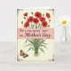 This greeting card features a decorative frame around a creamy background, topped with a dense cluster of deep red flowers with dark centers and softly ruffled petals, dotted with small green buds 🌼. A rose-pink banner runs across the middle, giving the layout a gentle, affectionate pause, as if the blooms are leaning in toward the message with quiet warmth ❤️. Centered on that banner is the text “For a very special aunt on Mother’s Day,” written in a flowing calligraphic style in a dark ink that stands out clearly. Beneath the banner, a thick sweep of layered green leaves forms a grounded base, like a soft cushion supporting the floral display. In the lower left corner, a small butterfly with orange-and-black patterned wings rests near the foliage, adding a tender sense of closeness and life. Dark brown curled corner details decorate the border, giving the edges an old-fashioned, romantic touch without feeling heavy. The red blossoms sit near the top edge while the butterfly appears near the bottom left, framed by the brown corner scrollwork.
