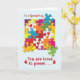 Any special boy is sure to love receiving this card from you as he celebrates a birthday. The front is filled with colorful puzzle pieces and hearts to greet him. The inside share a fun message that will definitely bring a smile on his face. Get your copy now to give him.
