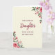 This greeting card features a warm cream center framed by soft watercolor flowers that suggest a gentle, close family bond ❤️. In the middle, the word “Daughter” appears large in deep maroon lettering with flowing, calligraphy-style strokes. Above it, “FOR A SPECIAL” is set in smaller, simple uppercase letters, aligned neatly near the top of the cream panel. Below, “WITH LOVE ON MOTHER’S DAY” sits in the same smaller uppercase style, balancing the layout and adding a tender, affectionate tone 🌼. The floral corners show blush-pink roses in bud and full bloom, with a few tiny pale blossoms tucked between them. Slender green leaves and light stems curl around the edges, as if softly reaching toward the message. The paint-like texture gives the petals gentle shading and a calm, romantic look. In each corner, the roses fade slightly into the cream background with airy green sprigs framing the text.