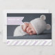 Add your favorite landscape oriented newborn photo to this modern full-bleed announcement and share your joy with friends and family. Design features your baby girl's name, birthdate and birth stats on a pale lavender ribbon banner, with your family greeting displayed atop a bottom border of diagonal stripes in white, pale gray and lavender.