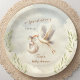 Gender Neutral baby shower paper plates with a classic design featuring a lovely stork delivering a bundle of joy with vintage vibes in neutral colors. Easily personalize the text or leave some of it blank. - Kate Eden Art