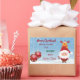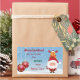 Cute and elegant Christmas gift sticker / label for kids with Santa in his red costume (holding a candy cane) and his favorite reindeer, Rudolph, behind him. The text reads "Merry Christmas! Please deliver to Jayden this special gift from Santa Claus" -- make sure you personalize the kid's name. You can also change the greeting, if you wish. The sticker also includes two red baubles with snowflakes, and a snowy landscape.