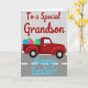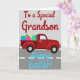 This greeting card shows a stylized utility truck in deep red driving along a cool gray road, its rounded fenders and simple profile giving it a gentle, friendly look. In the open bed, oversized egg-shaped forms pile high in pastel teal, lime green, hot pink, and sunny yellow, like a shared surprise meant for someone special 🐰. Behind the truck, the upper background is a pale brick pattern that feels like a quiet neighborhood wall, adding a cozy, familiar setting. The road beneath is marked with short white dashed lines that guide your eye forward, like the start of a sweet little trip. Near the top, a flowing line of text sits in dark red, centered and easy to spot against the light background. Near the bottom, a second line of text appears in light blue, placed over the gray area like a friendly note waiting at the curb 🌷. The contrast of warm reds with cool blues and soft neutrals makes the scene feel like a tender delivery between close friends. The white dashed lines run horizontally across the lower portion, evenly spaced beneath the truck’s wheels.