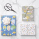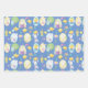 An Adorable Easter Wrapping Paper Set Set Grouping Of Bunnies And Chicks For Kids In Different Colors Gray, Blue and White