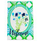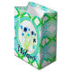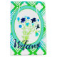 Special occasion welcome gift bag with navy blue floral design accented in teal and lime green, white background can be switched to any colour, and welcome text can be personalized to any message or text is removable, different size options available.