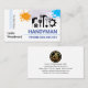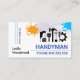 An all white cover features a paint splatter that has a handyman motif you can use. Just below this is the business name "HANDYMAN" and the contact details. To the left lies your prestigious name and a slogan caption option which is held vertically. ; Change the caption remarks to this to suit your own service needs.
