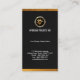 The same design them is brought to the back of the card. At the top is the optional logo, followed by the business name, contact details and an option for your slogan-tagline. A great card for heads of businesses or anyone who is partial to gold and possibly the color black.