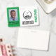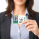 The Special Golf Event Name Badge is tailor-made for your golf occasion, reflecting the exclusivity and uniqueness of your event. Crafted with attention to detail, it embodies the essence of your gathering, whether it's a corporate summit, a charity gala, or a prestigious awards ceremony. It sets the tone for an extraordinary experience that will be remembered long after the event concludes. Bold and bright green rectangles highlight the photo i.d. customization on the front with special event detail customized on the back. A golf flag surrounded by laurel leaves indicates the golf theme.