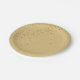 Shown is this petite stars printed paper plate in a gold-color. Stars angled on 3/4 of the plate.